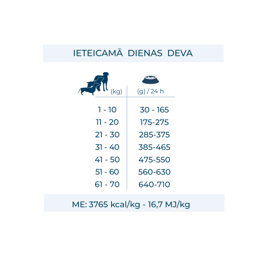 ME: 3765 kcal/kg - 16,7 MJ/kg.