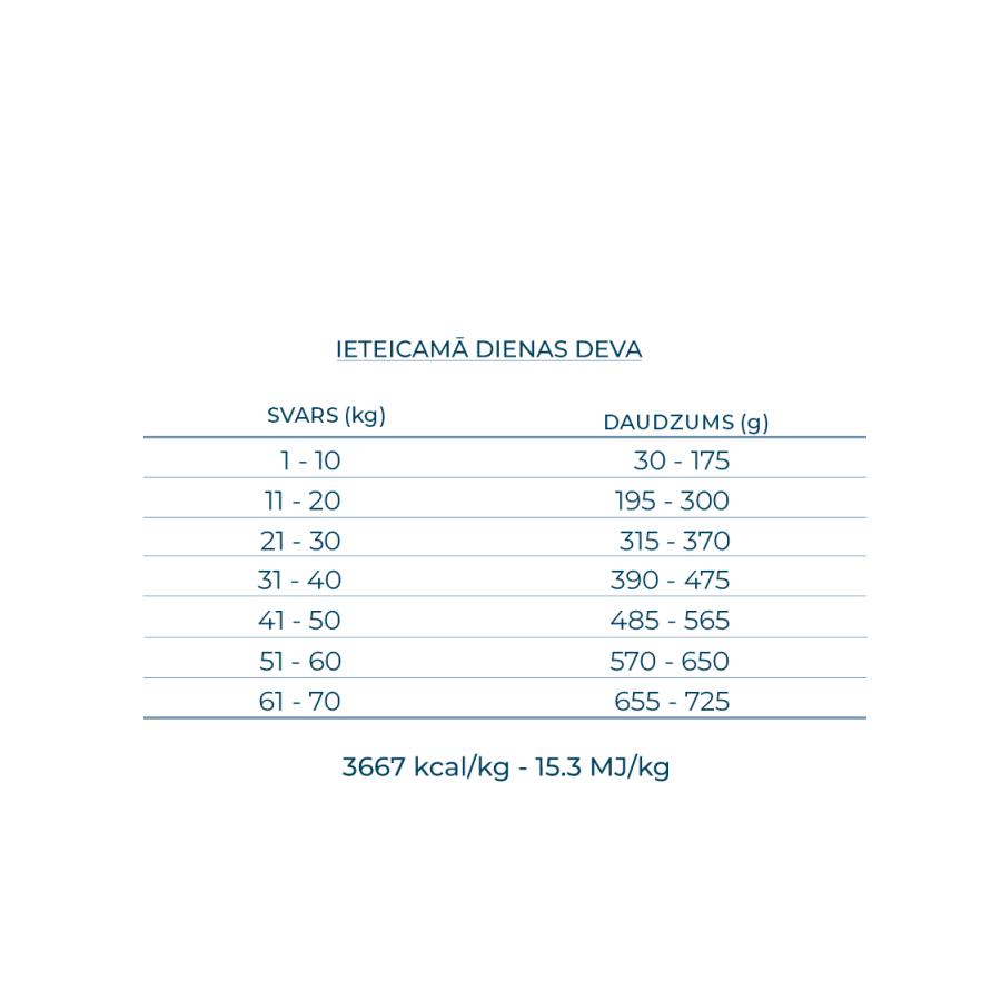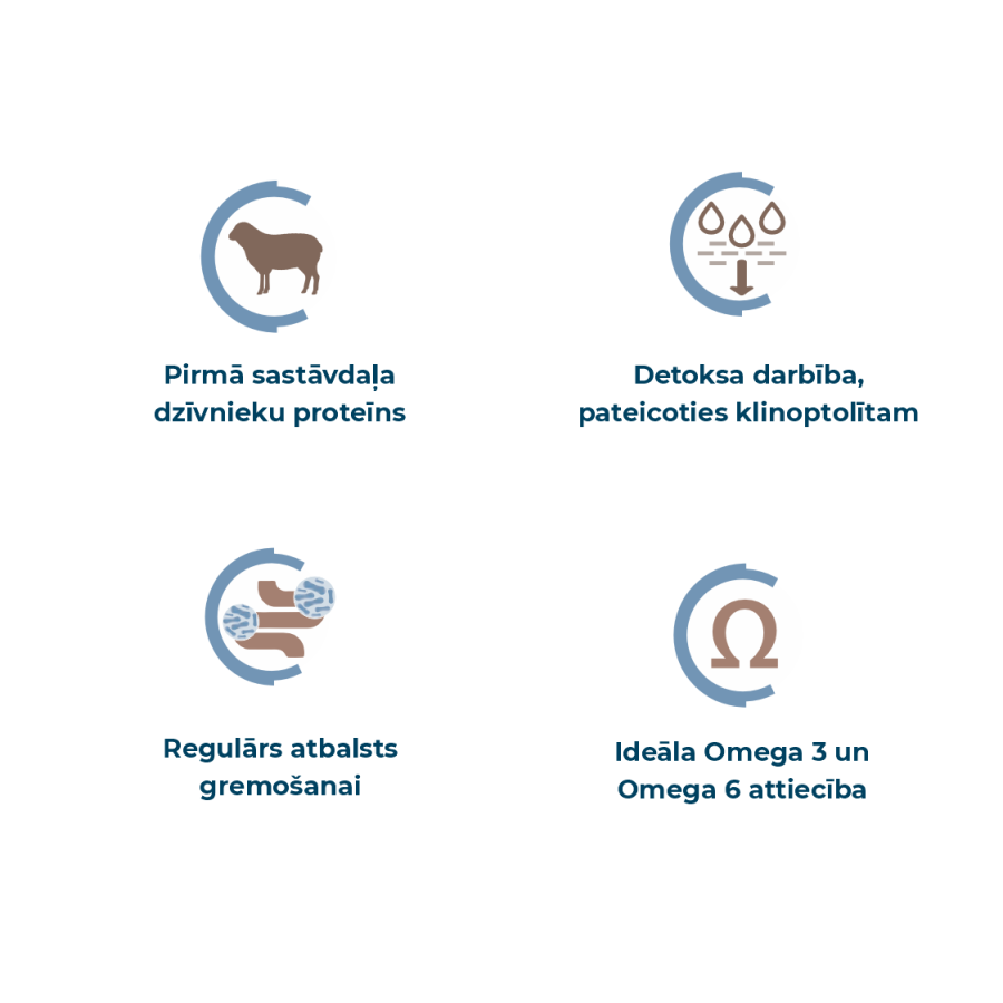 Ideāla omega-3 un omega-6 attiecība: pareizai fizioloģisko funkciju uzturēšanai; veicina veselīgu apmatojuma stāvokli.