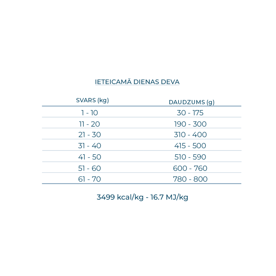 ME: 3499 Kcal/kg - 16,7 MJkg.
