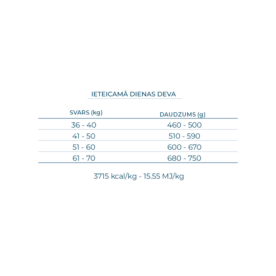 ME: 3715 kcal/kg - 15,55 MJ/kg.