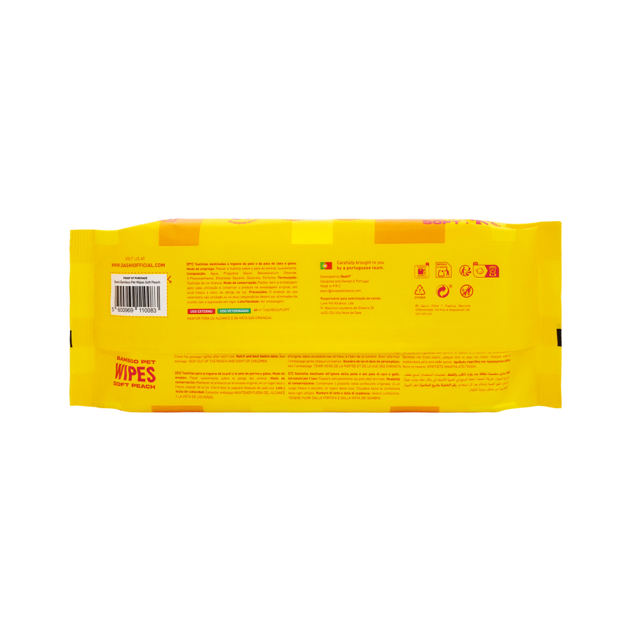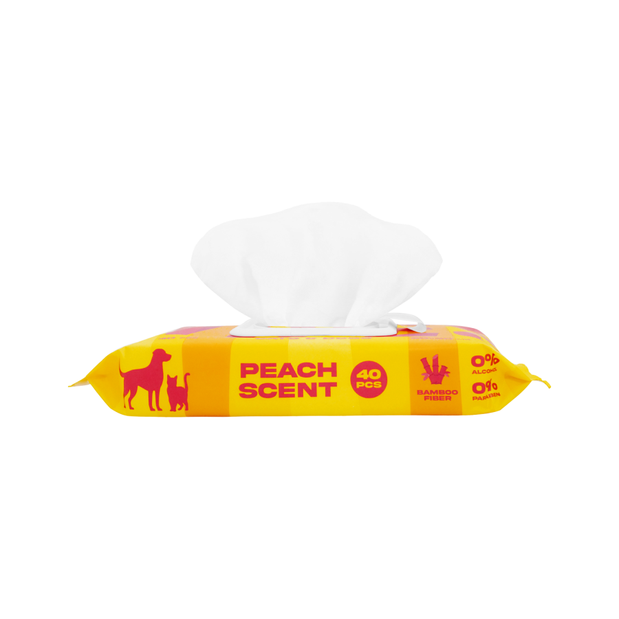 Vienreizlietojamas, no bambusa šķiedrām izgatavotas mitrās salvetes suņu un kaķu ādas un kažoka higiēnai: