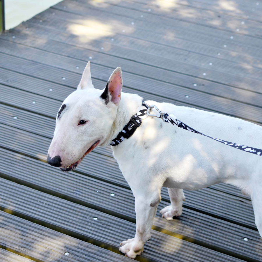Mūsu suņu kaklasiksnas ir izgatavotas no izturīga poliestera, tās ir pilnībā regulējamas un aprīkotas ar četrpunktu sprādzes fiksācijas sistēmu jūsu suņa drošībai.