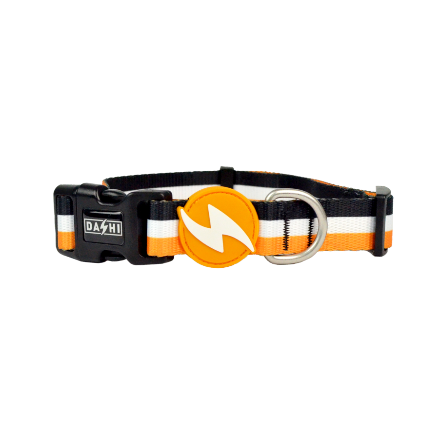 Mūsu suņu kaklasiksnas ir izgatavotas no izturīga poliestera, tās ir pilnībā regulējamas un aprīkotas ar četrpunktu sprādzes fiksācijas sistēmu jūsu suņa drošībai.