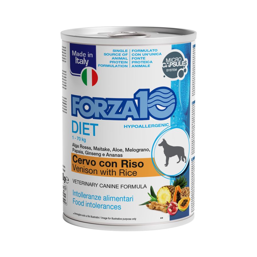 Īpašais barošanas mērķis: samazināt sastāvdaļu un barības vielu nepanesību. Būtiskās uzturīpašības: izvēlēts proteīna avots (briedis).
