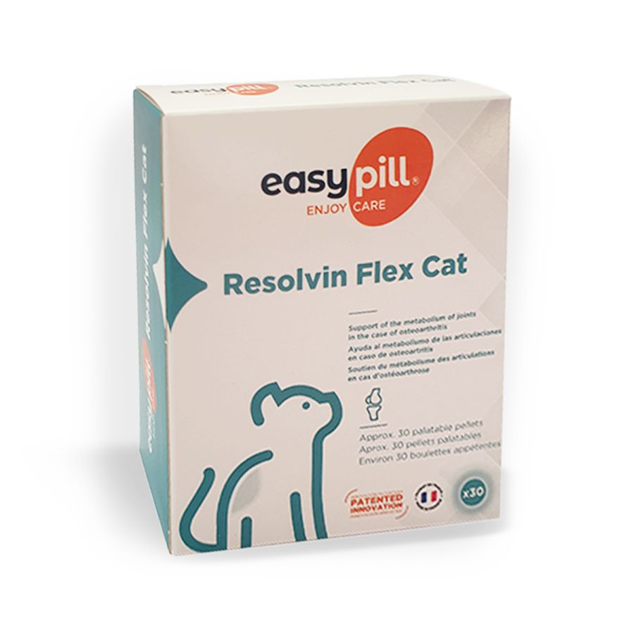 Pateicoties savam sastāvam, kurā ir omega-3 taukskābes, hondroitīns, glikozamīns, E vitamīns, DL metionīns, mangāna helāts un cinka helāts, garšīgās EasyPill Resolvin Flex pastilas kaķiem atbalsta locītavu vielmaiņu osteoartrīta gadījumā. Tās sastāvā ir arī baltais vītols un velna naga (Harpahophytum) saknes ekstrakts.