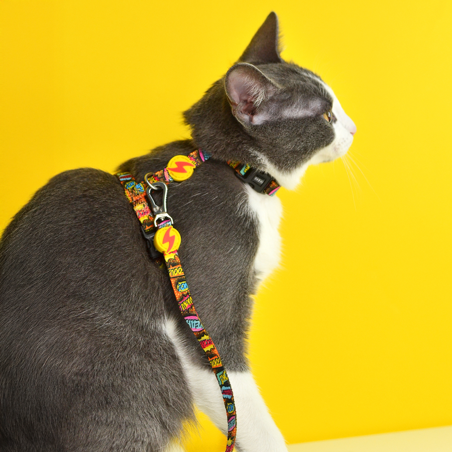 Mūsu kaķu krūšu siksnas ir izgatavotas no izturīga poliestera, pilnībā regulējamas, nodrošinot maksimālu pielāgošanos jūsu kaķa augumam. Tā aprīkota ar četru punktu sprādzes fiksācijas sistēmu, kas garantē jūsu mīluļa drošību pastaigu laikā. Krūšu siksnai muguras pusē ir piestiprināts D-gredzens, kurā ērti varat pievienot komplektā iekļauto pavadu. Arī pavada ir izgatavota no izturīga poliestera, un tās rokturis darināts no mīksta neoprēna, nodrošinot komfortu turētājam.