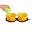 Saliekama silikona ceļojuma bļoda. Ērta uzglabāšanai un ceļošanai. Divi vienā: piemērota gan barībai, gan dzeramajam ūdenim.
