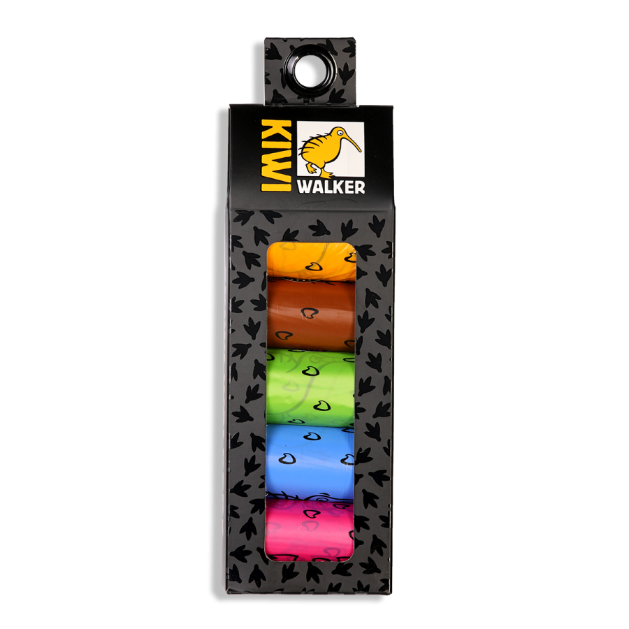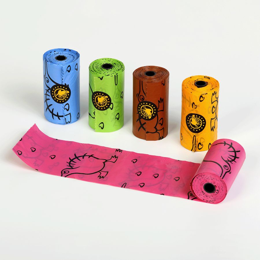 Kvalitatīvi, krāsaini un bioloģiski noārdāmi maisiņi suņu izkārnījumu savākšanai. Iepakojumā ir 5 ruļļi, katrā ir 15 maisiņi.