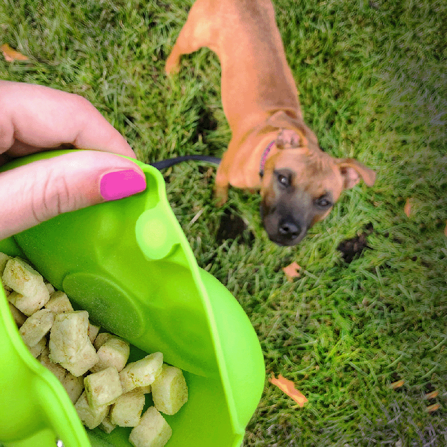 Mīksta silikona kārumu somiņa, kas ērti piesprādzējama pie jostas. Lieliski piemērota un ērta lietošanai pastaigu vai treniņnodarbību laikā ar suni. Somiņas augšpusē ir magnēta aizdare, kas viegli atveras, kad nepieciešams piekļūt kārumiem, un pēc tam atkal aizveras, lai novērstu kārumu izkrišanu.