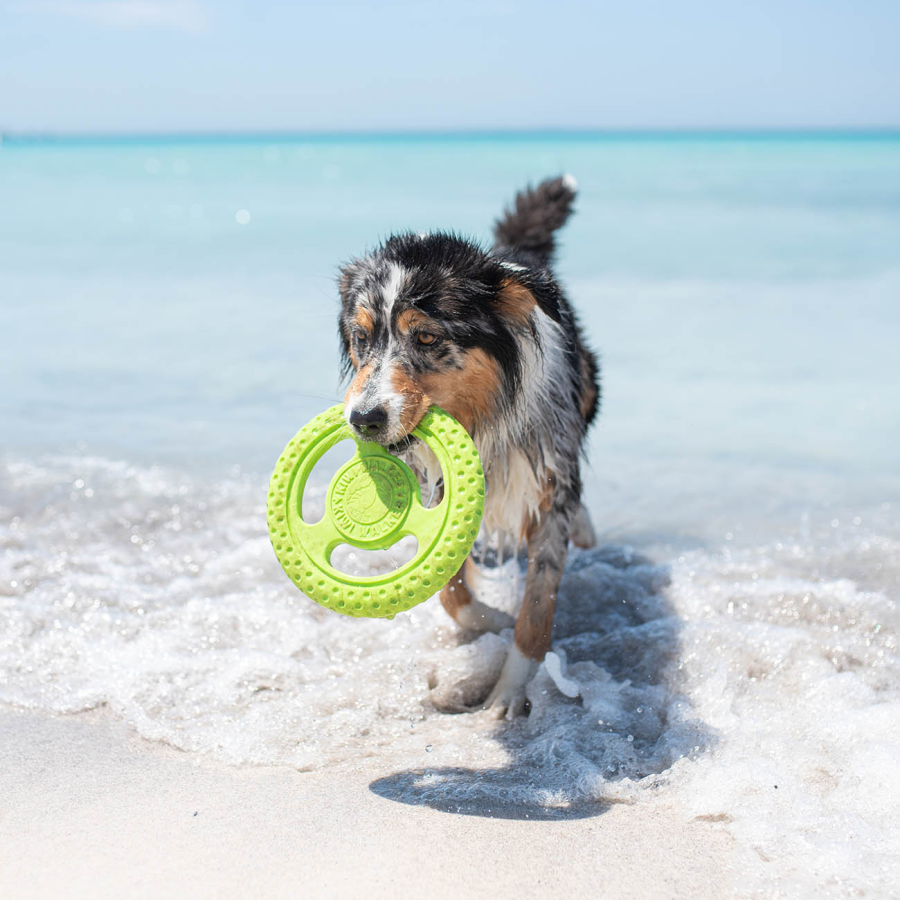 - Izturīga frisbija rotaļlieta, kas izgatavota no augsta blīvuma termoplastiskas gumijas (TPR) putām.