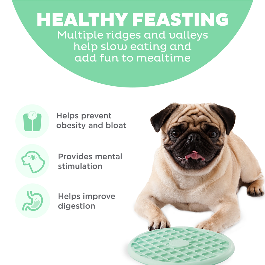 - Palīdz samazināt aptaukošanos un vēdera uzpūšanos suņiem un kucēniem. Veicina pareizu gremošanu, palīdz novērst pārēšanos un ar to saistītās problēmas, kas rodas ātri ēdošiem suņiem, tostarp vēdera uzpūšanos, regurgitāciju un aptaukošanos.