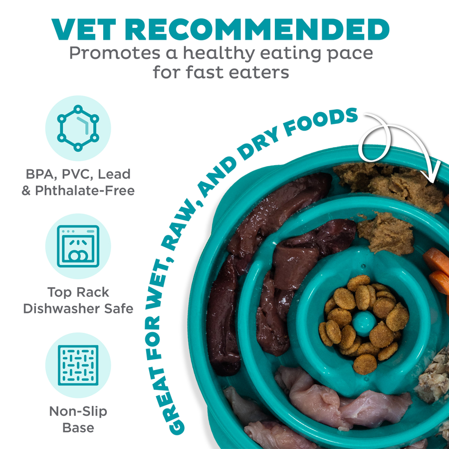 • Vidēja izmēra lēnēšanas bļoda suņiem – palīdz līdz pat 10 reizēm palēnināt ēšanu; šī VISLĒNĀKĀ līmeņa bļoda ir vislabāk piemērota ļoti ātriem ēdājiem un maza un vidēja auguma suņu šķirnēm.