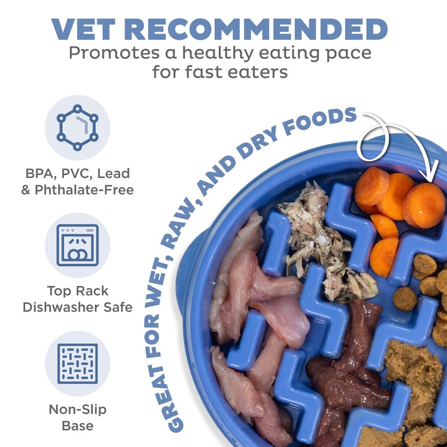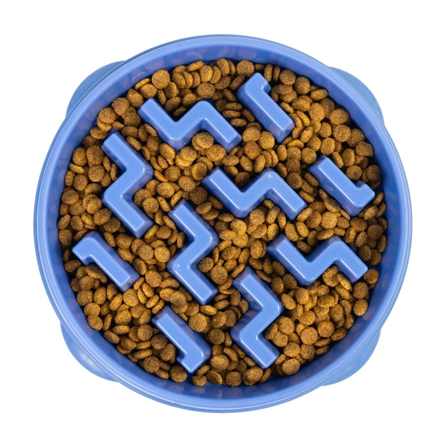 - Palīdz samazināt aptaukošanos un vēdera uzpūšanos suņiem un kucēniem. Veicina pareizu gremošanu, palīdz novērst pārēšanos un ar to saistītās problēmas, kas rodas ātri ēdošiem suņiem, tostarp vēdera uzpūšanos, regurgitāciju un aptaukošanos.