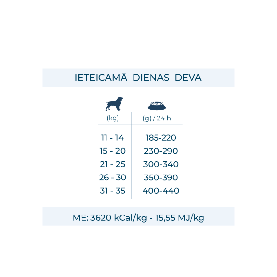 ME: 3620 kcal/kg - 15,15 MJ/kg.