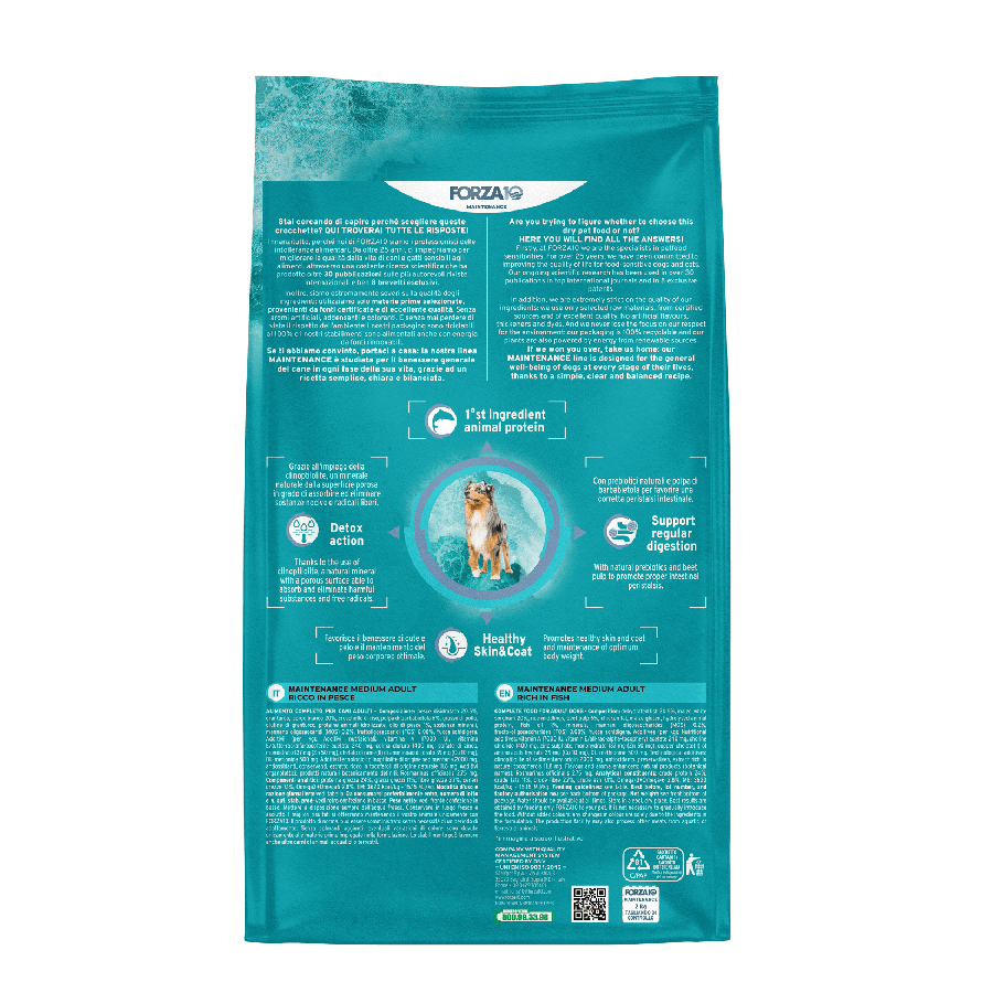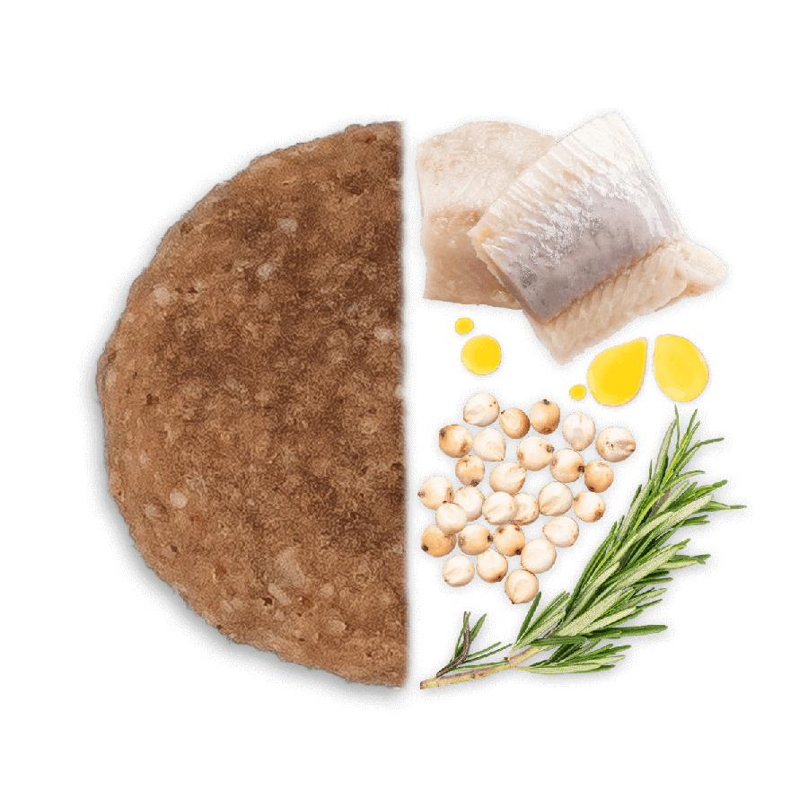 Sastāvs: dehidratizētas zivis 20,5%, kukurūza, baltais sorgo 20%, rīsu atsijas, biešu mīkstums 6%, vistas tauki, kukurūzas proteīns, dzīvnieku proteīnu hidrolizāts, zivju eļļa 1%, minerālvielas, mannānoligosaharīdi (MOS) 0,2, fruktooligosaharīdi (FOS) 0,08%, Yucca schidigera.