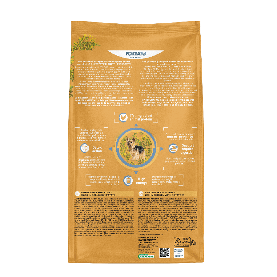 Sastāvs: dehidratizēts vistas proteīns 23%, kukurūza, baltais sorgo, rīsu atsijas, biešu mīkstums 5,6%, kartupeļi 4,1%, vistas tauki, dehidratizētas zivis, dzīvnieku proteīnu hidrolizāts, zivju eļļa 1,1%, minerālvielas, mannānoligosaharīdi (MOS) 0,13%, fruktooligosaharīdi (FOS) 0,05%, Yucca schidigera 0,024%.