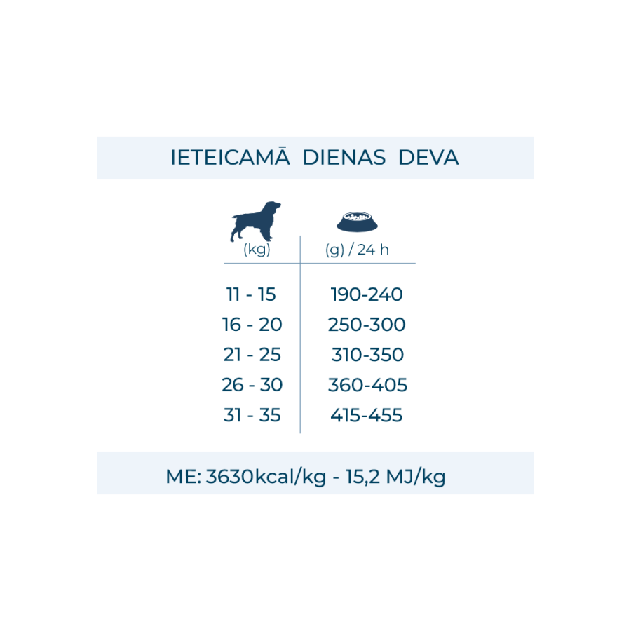 ME: 3630 kcal/kg – 15,2 MJ/kg.