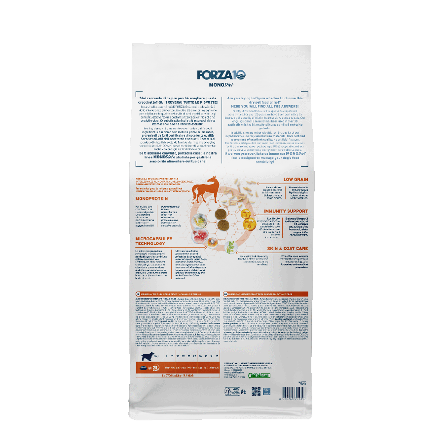 Monoproteīns: sastāvā zirga gaļa - viegli sagremojama sarkanā gaļa, alternatīvs olbaltumvielu avots, kas piemērots dzīvniekiem ar jutīgu gremošanas sistēmu.