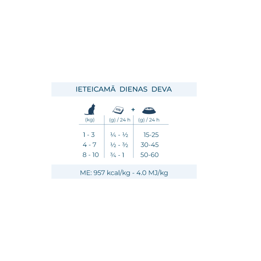 ME: 957 kcal/kg – 4,0 MJ/kg.