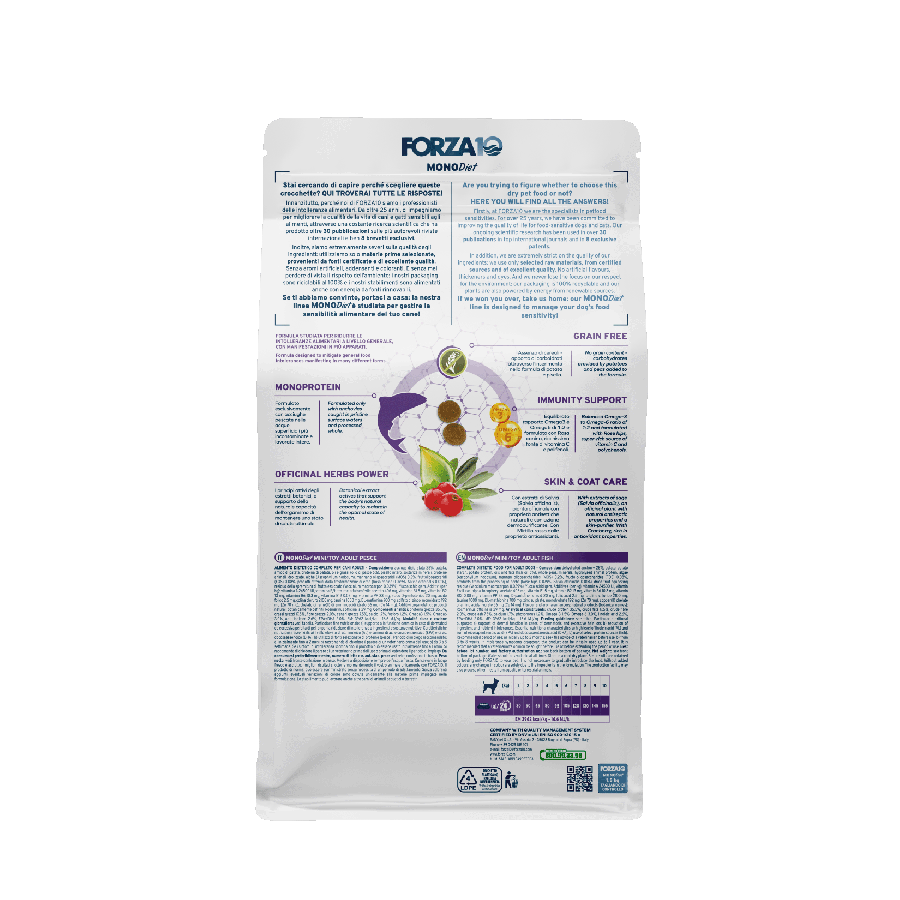 Pilnvērtīga diētiskā barība pieaugušiem maza auguma suņiem. Monoproteīna, bezgraudu barība. Piemērota dzīvniekiem ar barības nepanesību un/vai alerģiju un ādas funkcijas veicināšanai dermatozes un pārmērīgas apmatojuma izkrišanas gadījumos.