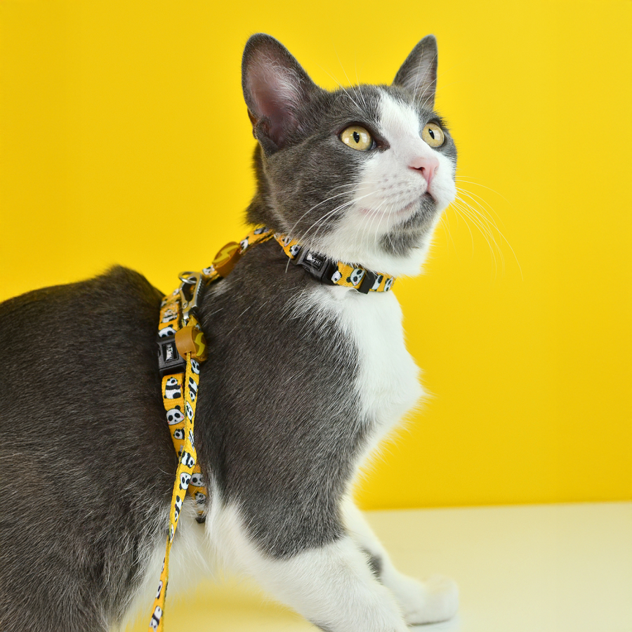 Mūsu kaķu krūšu siksnas ir izgatavotas no izturīga poliestera, pilnībā regulējamas, nodrošinot maksimālu pielāgošanos jūsu kaķa augumam. Tā aprīkota ar četru punktu sprādzes fiksācijas sistēmu, kas garantē jūsu mīluļa drošību pastaigu laikā. Krūšu siksnai muguras pusē ir piestiprināts D-gredzens, kurā ērti varat pievienot komplektā iekļauto pavadu. Arī pavada ir izgatavota no izturīga poliestera, un tās rokturis darināts no mīksta neoprēna, nodrošinot komfortu turētājam.