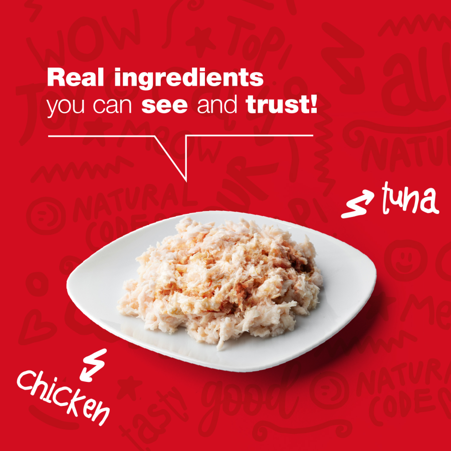 Uz vistas gaļas bāzes, kas ir viegli sagremojams olbaltumvielu avots kaķim, ir pievienots tuncis – zivs, kas nodrošina omega-3 taukskābes un minerālvielas. Pievienots arī neliels daudzums rīsu (1%) – viegli sagremojams enerģijas avots kaķim.