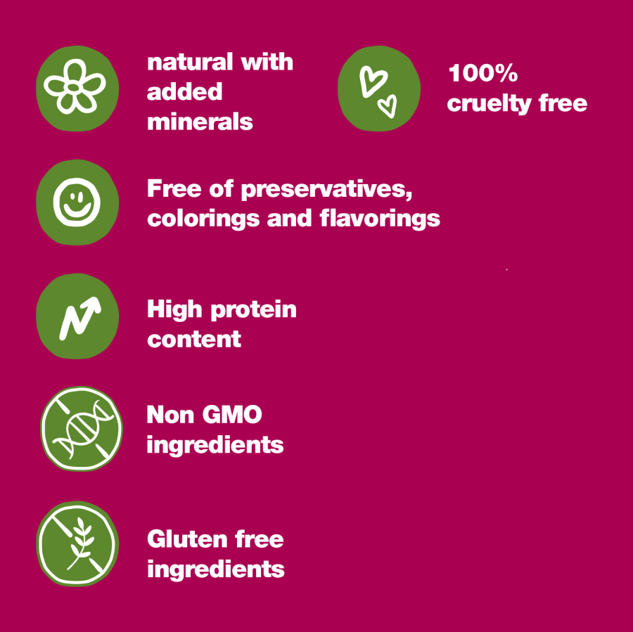 • 100% dabīgas un minimāli apstrādātas izejvielas.