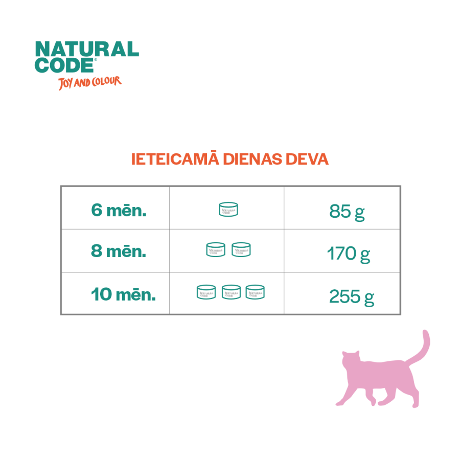 - Ēdienkarte ir piemērota kaķēniem vecumā no 4 līdz 12 mēnešiem.