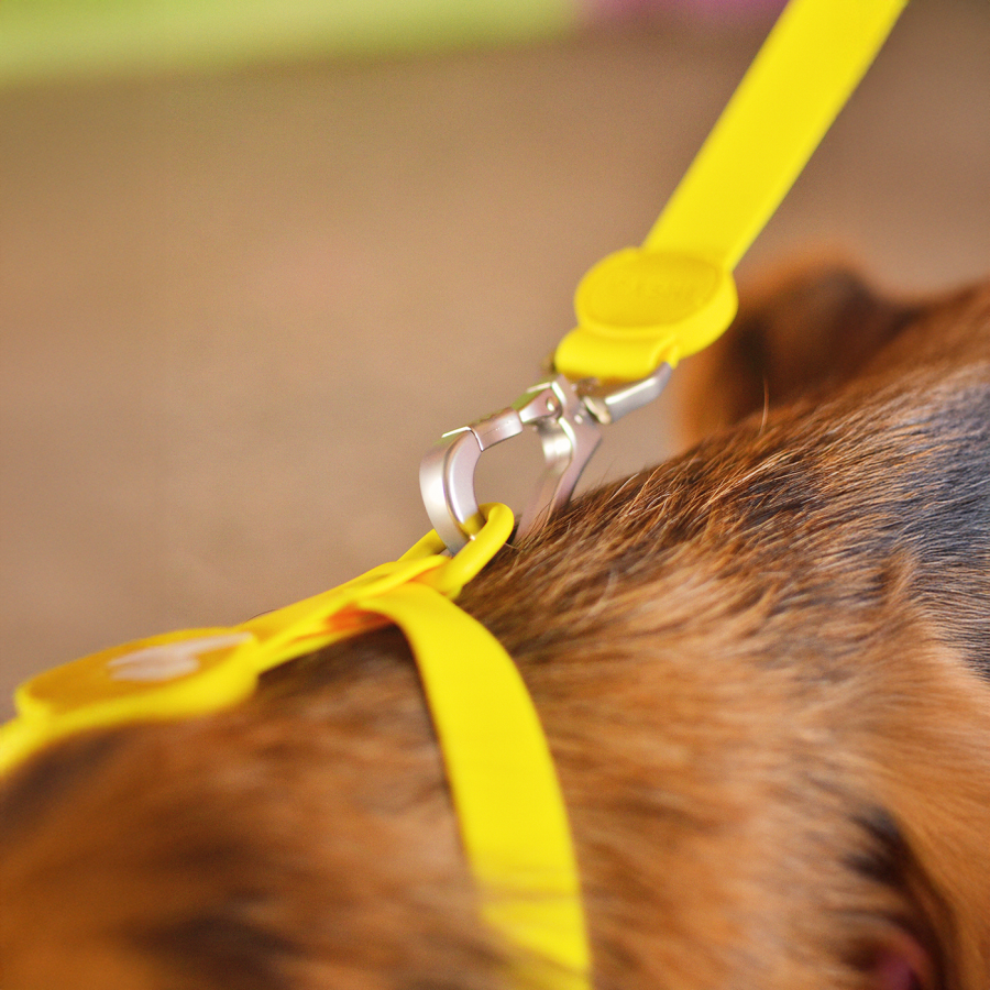 Mūsu COLORFLEX pavadas ir izgatavotas no izturīga un mīksta TPU materiāla, ar komfortablu rokturi. Mūsu 360º karabīnei ir ekskluzīva drošības slēdzene, kas nofiksējas ātrāk nekā jebkura cita karabīne tirgū. Pie roktura ir D-gredzens higiēnas maisiņu turētāja vai citu aksesuāru piestiprināšanai.
