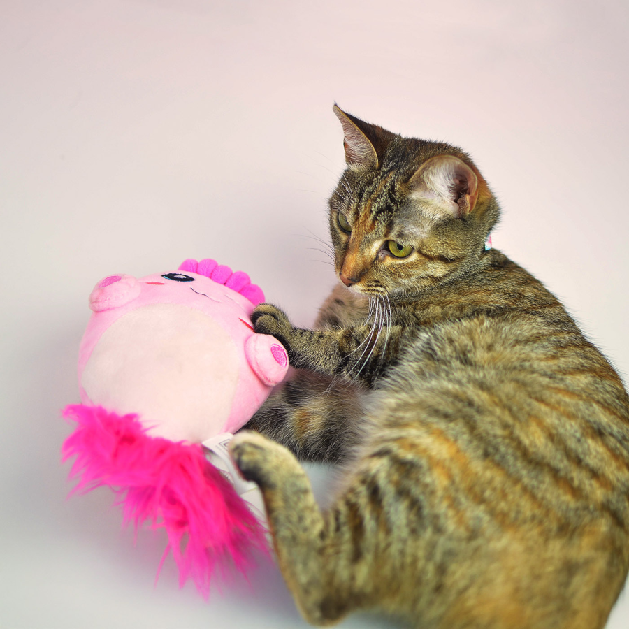 Mūsu plīša rotaļlietas ir izgatavotas no mīksta auduma, nodrošinot tām maigu tekstūru, un iekšpusē tām ir pīkstulis, kas nodrošinās stundām ilgu rotaļu.