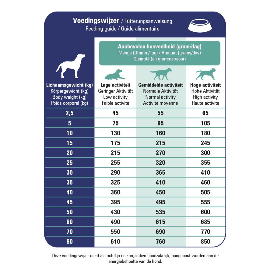 Barošanas norādījumi: skatīt tabulu.