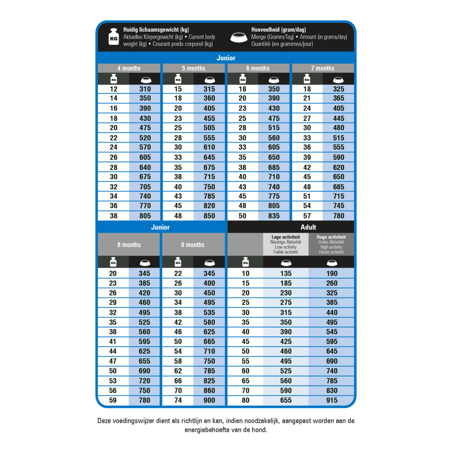 - Augsts enerģijas saturs. Paaugstināts tauku saturs, lai nodrošinātu jaunu un aktīvu suņu enerģijas vajadzības. L-karnitīns palīdz tauku vielmaiņai.