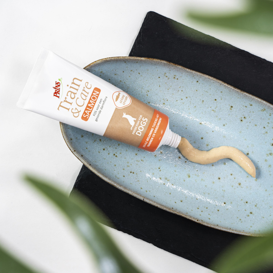 Prins Train & Care Dog kāruma krēma sastāvā ir daudz laša. Šis krēms ir ne tikai ļoti gards, bet arī nesatur kviešus (glutēnu), un sastāvā esošais lasis ir vienīgais dzīvnieku olbaltumvielu avots. Prins Train & Care ir ideāla balva sunim. Tūbiņa ļauj ērti dozēt , un kaŗumu var dot tieši no tūbiņas. Šis našķis ir 100% dabīgs, nesatur krāsas, garšas vai smaržas uzlabotājus.