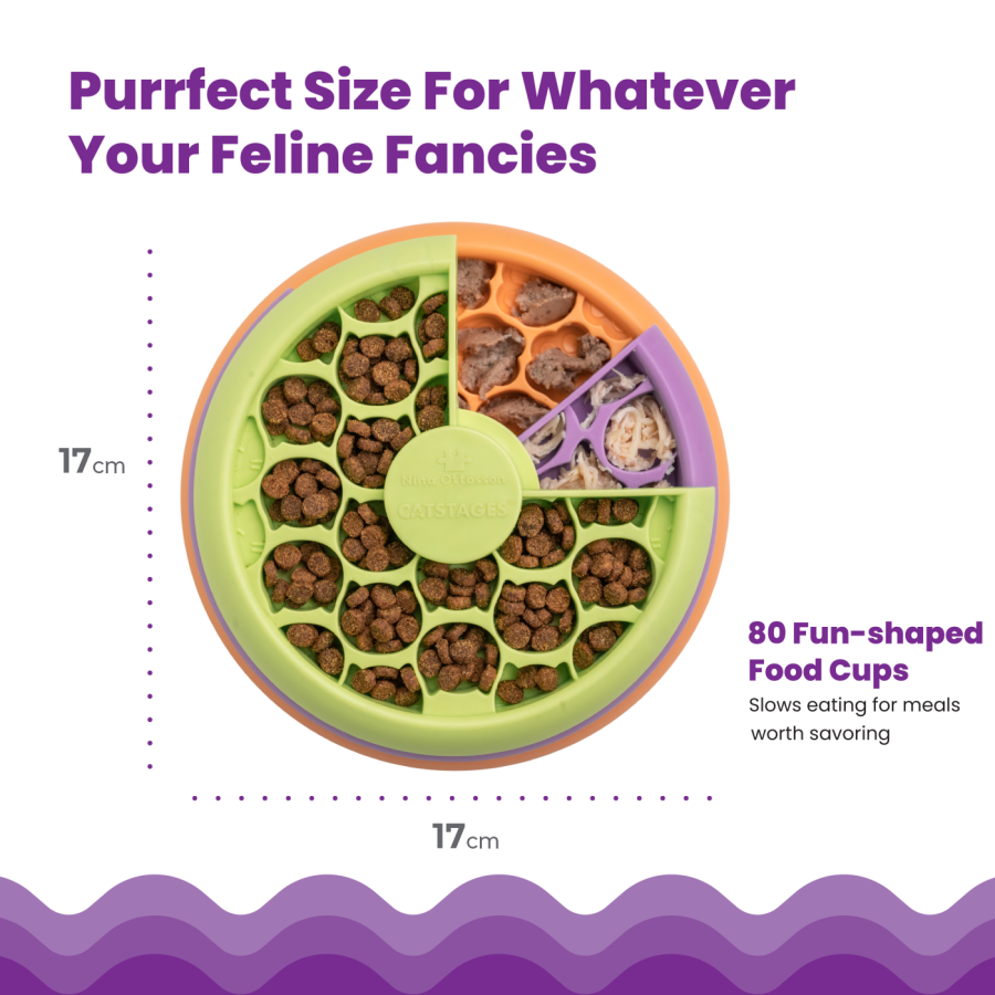 - Prāta stimulācija ar vairāk nekā 80 barības nodalījumiem: vairāk nekā 80 barības nodalījumi, lai ilgāk nodarbinātu un izklaidētu jūsu kaķi; veicina prāta attīstību un izaicina jūsu kaķi ar katru griezienu, padarot ēdienreizes aizraujošākas.