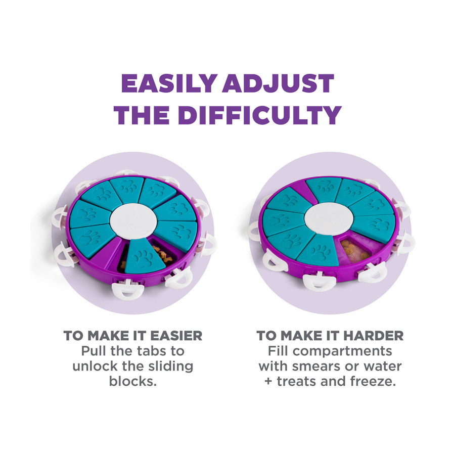 - Daudzveidīgas spēles iespējas – suņi izvelk atvilktnes, atbloķē blokus un pārvieto tos, lai atrastu paslēptos kārumus. Lai padarītu spēli vieglāku vai grūtāku savam mīlulim, skatiet mūsu sadaļu “Padomi un triki”.