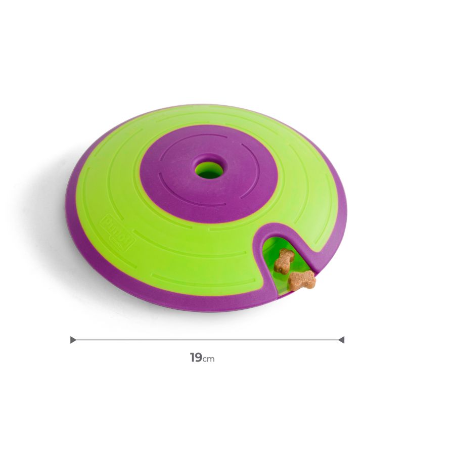 - Jautrība ar suņu gardumiem vai barību – ietilpst līdz 116 g suņu barības; var izmantot kā bļodu ēdienreizes laikā, lai palīdzētu palēnināt ēšanas tempu.