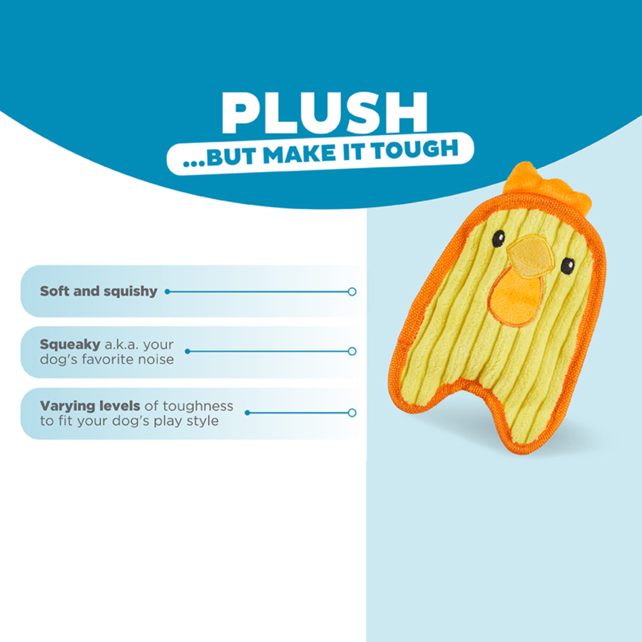 - Mīksts plīšs ar izturīgu konstrukciju aktīviem spēlētājiem: izturīgās apdares un K-9 TUFF GUARD iekšējā slāņa dēļ šī suņa rotaļlieta ir izturīgāka pret košanu nekā tradicionālās plīša rotaļlietas, lai gan neviena rotaļlieta nav neiznīcināma.