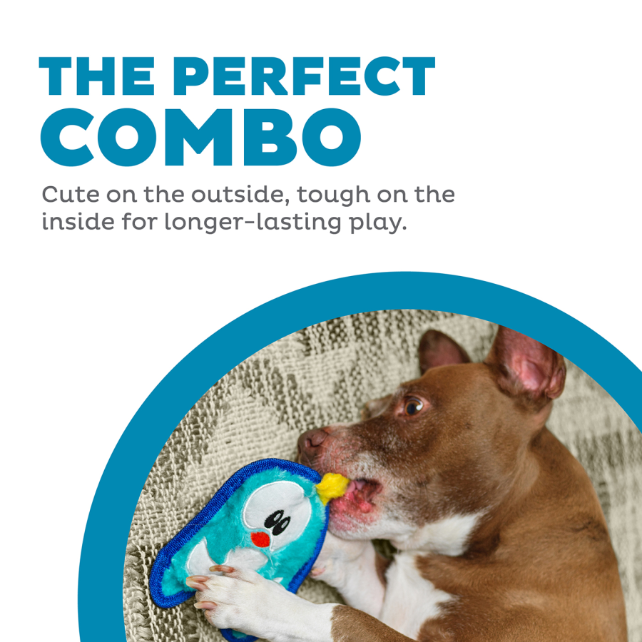 • Mīksts plīšs ar izturīgu konstrukciju aktīviem spēlētājiem: izturīgās apdares un K-9 TUFF GUARD iekšējā slāņa dēļ šī suņa rotaļlieta ir izturīgāka pret košanu nekā tradicionālās plīša rotaļlietas, lai gan neviena rotaļlieta nav neiznīcināma.