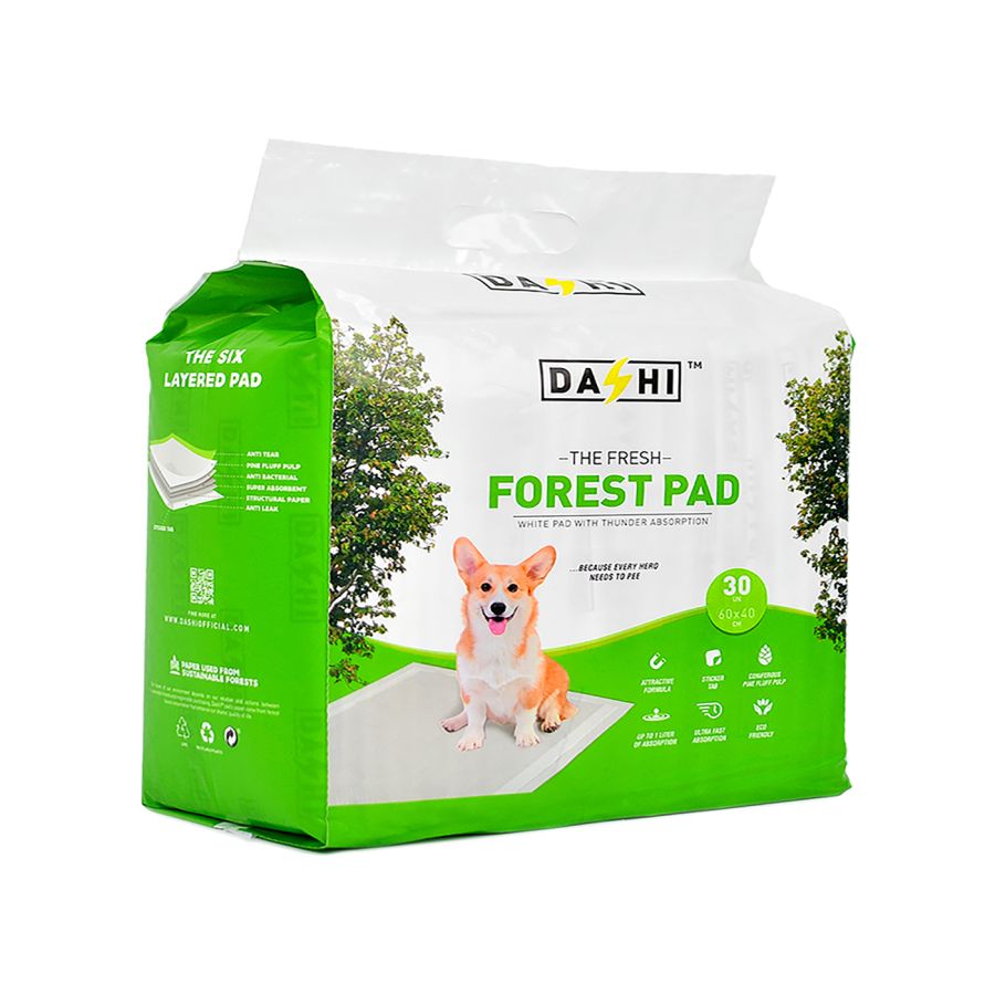 Dashi FOREST paladziņi ir lieliski piemēroti suņiem, nodrošina īpaši ātru šķidruma uzsūkšanos. Liela absorbcijas kapacitāte – tie spēj uzsūkt līdz pat 2 litriem šķidruma. Pateicoties ātrai uzsūkšanai, uz grīdas nepaliek traipi. Pēc šķidruma absorbcijas virsma paliek sausa. Ar lipekļiem stūros, lai noturētu paladziņu vietā.