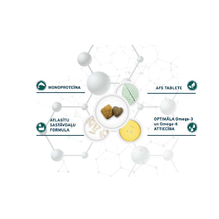 Monoproteīna barība: Sastāvā tikai viens alternatīvs dzīvnieku proteīna avots: zivju proteīns ar augstu bioloģisko vērtību un biopieejamību.