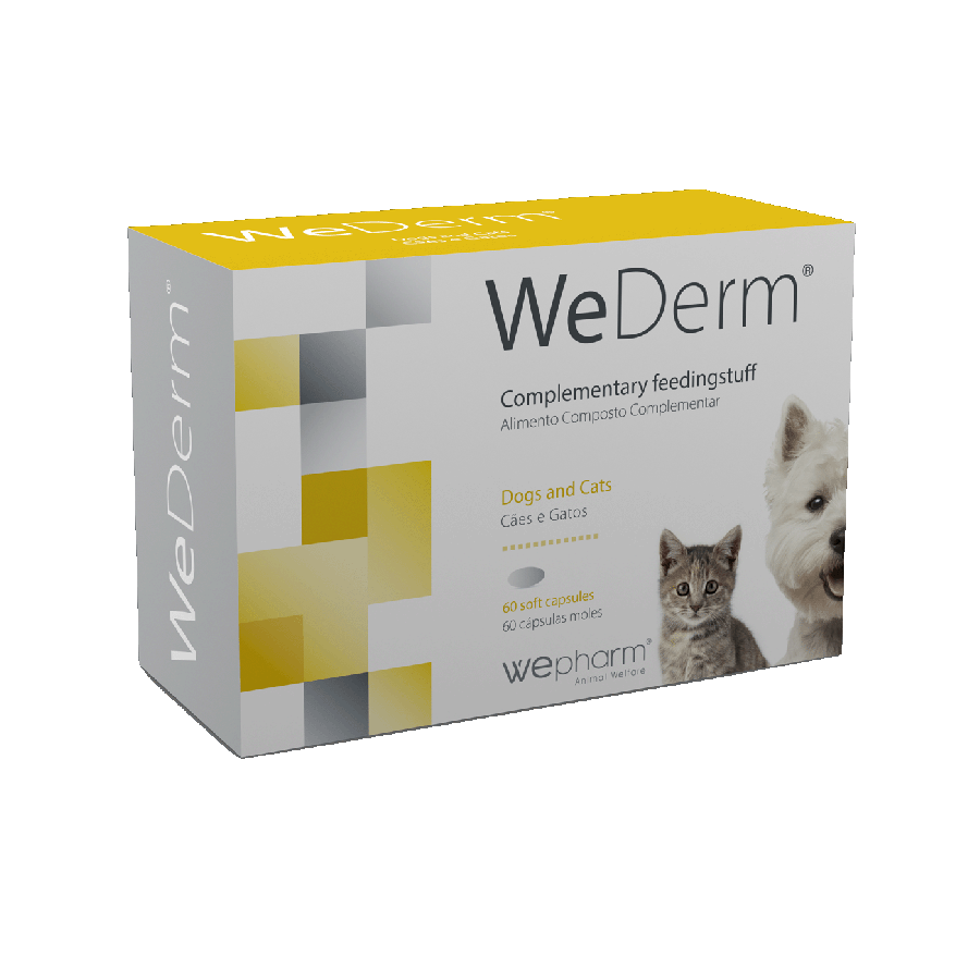 WeDerm ir papildbarība suņiem un kaķiem ar augstu neaizstājamo taukskābju, vitamīnu un minerālvielu saturu ādas funkciju atbalstam dermatožu, alopēcijas, niezes vai jebkādu alerģisku dermatoloģisko izpausmju gadījumos. Pieejama kapsulu un iekšķīgi lietojama šķidruma formās.
