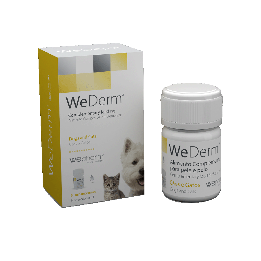 WeDerm ar augstu neaizvietojamo taukskābju (omega-3 un omega-6), vitamīnu un minerālvielu saturu nodrošina unikālu un līdzsvarotu atbalstu veselībai ādai un kažokam.