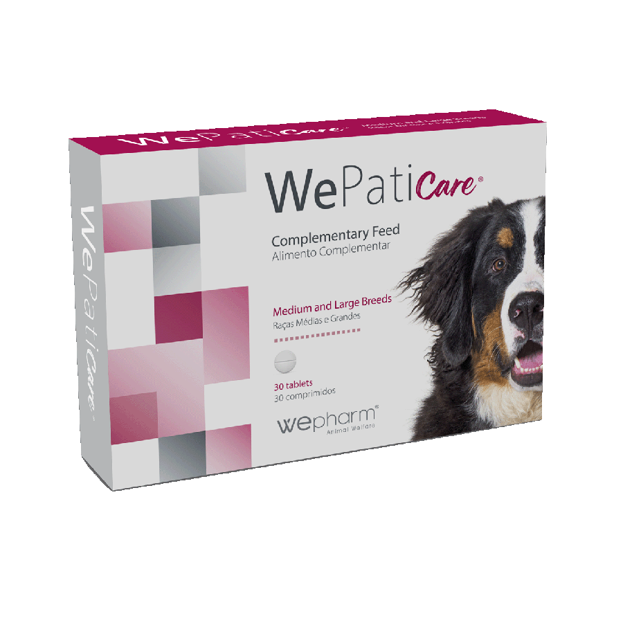 WePaticare vidējo un lielo šķirņu suņiem 1 tabletes sastāvs: Īstais mārdadzis (Silybum marianum)(Siliphos - silibīna un fosfatidilholīna komplekss) 70 mg, Pieneņu lapas (Taraxacum officinale) 28 mg, Kurkuma (Curcuma longa) 35 mg, Artišoka lapas (Cynara scolymus) 14 mg, Tragantzirnis (Astragalus membranaceus) 14 mg, Divdaivu ginks (Gingko biloba) 14 mg, Enterococcus faecium 1,9 mg (6,7 x 10^19 CFU), Auzu klijas 7 mg, Lecitīni (polinepiesātināts fosfatidilholīns) 14 mg, E vitamīns 70 mg, B grupas vitamīnu komplekss (B1 7mg, B2 7 mg, B6 3,5 mg, B9 1,04 mg, B12 0,35mg), Sazaroto ķēžu aminoskābes (L-leicīns, L-izoleicīns, L-valīns): katra 0,7 mg, Cinks 21 mg, Selēns 0,07 mg